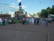 Песню «Россия-Русь» на ступеньках Дворца молодежи «Октябрь» исполнили лауреат международных и всероссийских конкурсов Липецкий камерный хор под управлением заслуженного артиста РФ Игоря Цилина и хор мальчиков детской школы искусств №6.