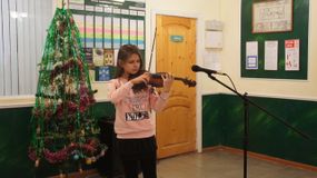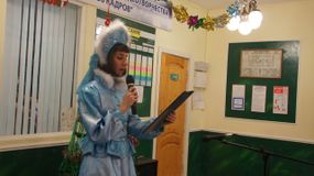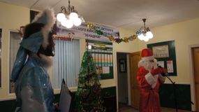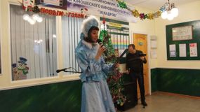 Учащиеся выступили с концертными номерами. А после того, как зажглась новогодняя ёлка, в празднечном хороводе дети кружили вместе с Дедом Морозом и Снегурочкой.