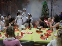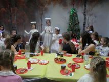 Учащиеся приняли участие в конкурсах, играх, и викторинах, а после того, как зажглась новогодняя ёлка, дети кружили в праздничном хороводе.