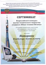 Педагог Владимир Анатольевич Потороев стал обладателем сертификата за профессиональную подготовку обучающихся к мероприятию всероссийского значения.