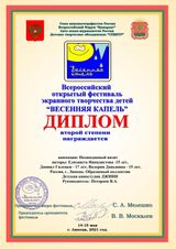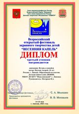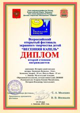 Завершился очередной ХХIII Всероссийский ежегодный открытый фестиваль экранного творчества детей «Весенняя капель -2021»