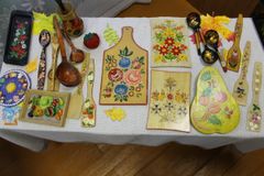 Сегодня на выставке «Декоративно-прикладное искусство. Роспись, Истоки и современность» представлены предметы народного быта и работы учащихся творческого объединения «Арт – Декор».