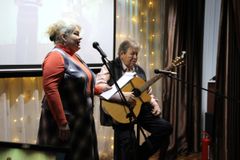 Владимир и Ольга Жировы пели песни, читали отрывки из фронтового дневника танкиста, рассказывали о Великой Отечественной войне, её боях за Родину и нашей Победе.