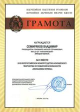 Приятно, что из 12 лучших работ, отобранных на региональном смотре и направленных в Центральный совет ВДПО, работа нашего обучающегося Семирякова Владимира «Модель спасательного вертолета МЧС» (руководитель Алексей Серафимович Пономарев) завоевала 2 место в номинации «Технические виды творчества».