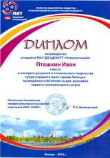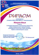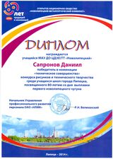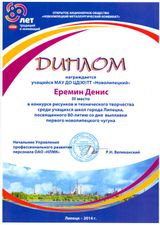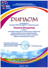 В декабре – в рамках акции «Победа в сердце каждого!», прошел конкурс рисунков и технического творчества, посвящённого 80-летию выплавки первого новолипецкого чугуна, среди обучающихся школ г. Липецка, с целью развития творческих способностей обучающихся, содействия нравственному воспитанию молодежи и самостоятельному выбору профессии, формированию интереса к производственной деятельности ОАО «НЛМК» был проведен конкурс.