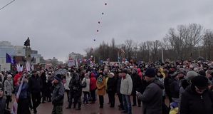 В финале митинга собравшиеся увидели Россию, сложенную из огромной мозаики, а в небо взмыли десятки белых, голубых и красных шаров.